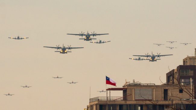 La Fuerza Aérea (FACH), por su parte, destacó con la participación de tres S-70i Blackhawk recién recibidos desde la fábrica en Polonia, una impresionante formación de 22 F-16 Fighting Falcon, cinco F-5 Tigre III demostrando las capacidades institucionales de re-abastecimiento en vuelo con cisternas KC-135E Stratotanker y KC-130R Hércules y el venerable B-707 Cóndor de vigilancia electrónica.