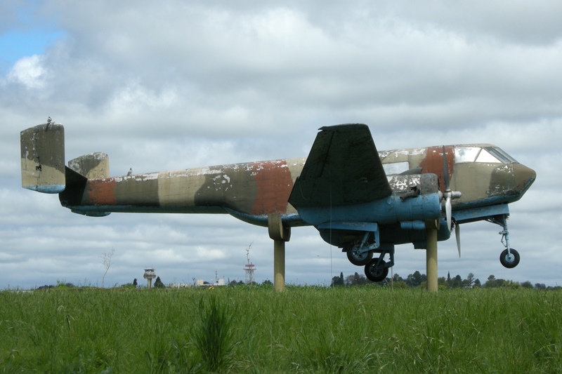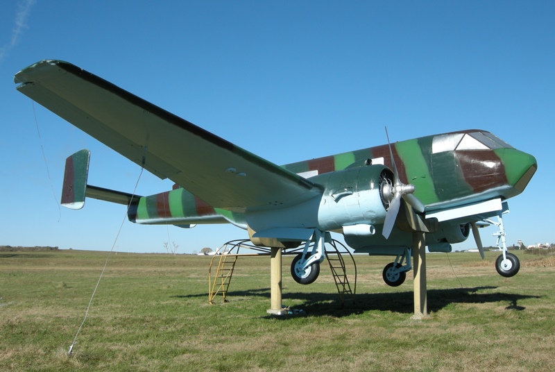 A su lado se encuentra un aparato de diseño y producción argentina, el DINFIA IA-35 Ia Huanquero, número de serie 22.