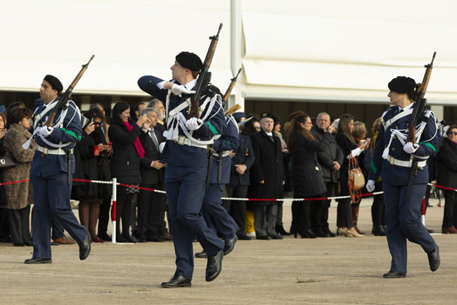 Los actos dieron comienzo a las 12.30h, con la entrada en el hangar del Ala 31 de la escuadrilla de honores. Los Generales pasaron revista a las tropas y seguidamente el General de Brigada Francisco Nebot dedicó una alocución a los presentes. En la que glosó un resumen de la historia de la aviación militar desde sus inicios hasta nuestros días y de la gran evolución del Ejército del Aire. Agradeció el buen hacer y el esfuerzo diario de las unidades destinadas en la Base de Zaragoza, así como de los componentes de estas unidades que en estos momentos están defendiendo los intereses de España fuera de nuestras fronteras.