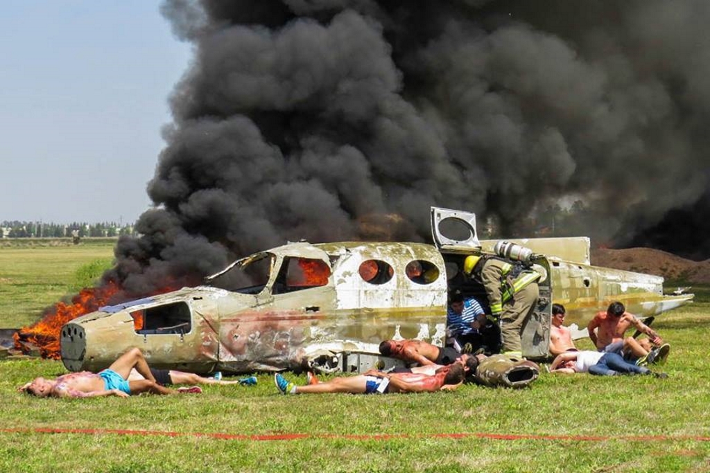 Además, a un costado de la base de la Policía de Seguridad Aeroportuaria se encuentran el fuselaje de un bimotor liviano que sirve para instrucción para los bomberos del aeropuerto.