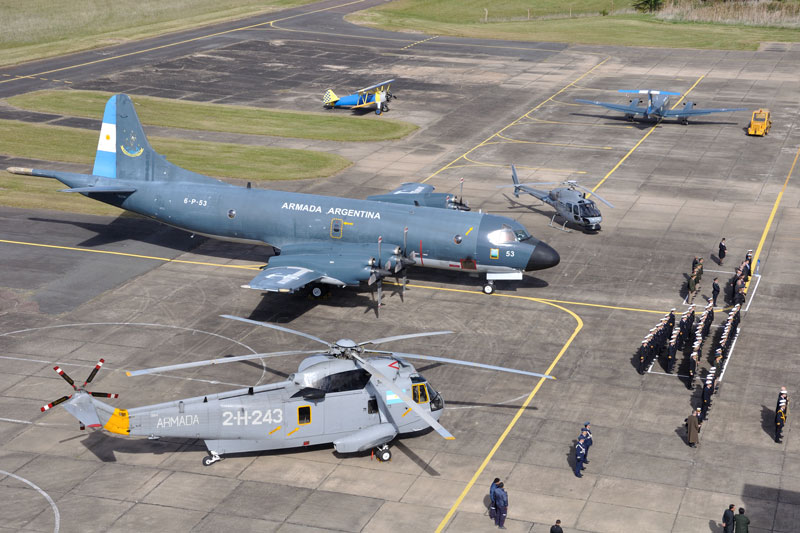 Por tal motivo en la plataforma donde se realizaría la ceremonia se dispusieron estáticamente el Eurocopter AS 555SN Fénnec 0863/3-H-131, el Sikorsky UH-3H Sea King 0884/2-H-243, el Loockheed P-3B Orion 0869/6-P-53 y el Pilatus PC-6/B1A-H2 0686/G-2.