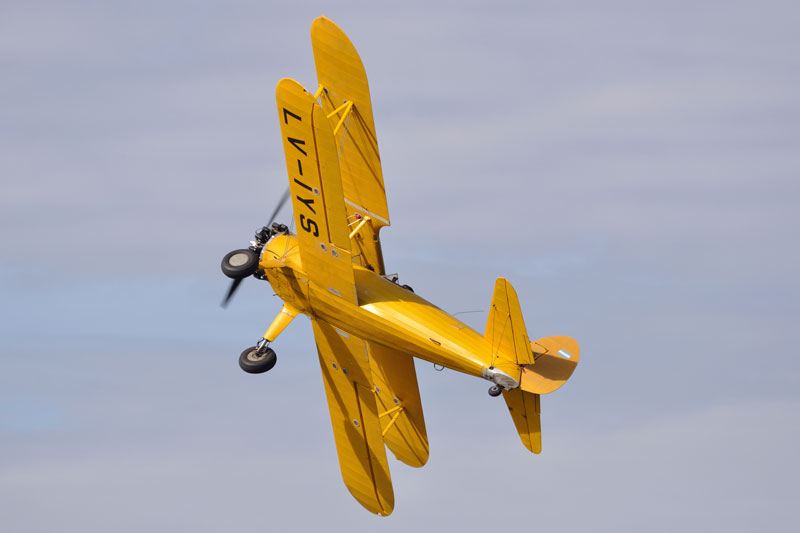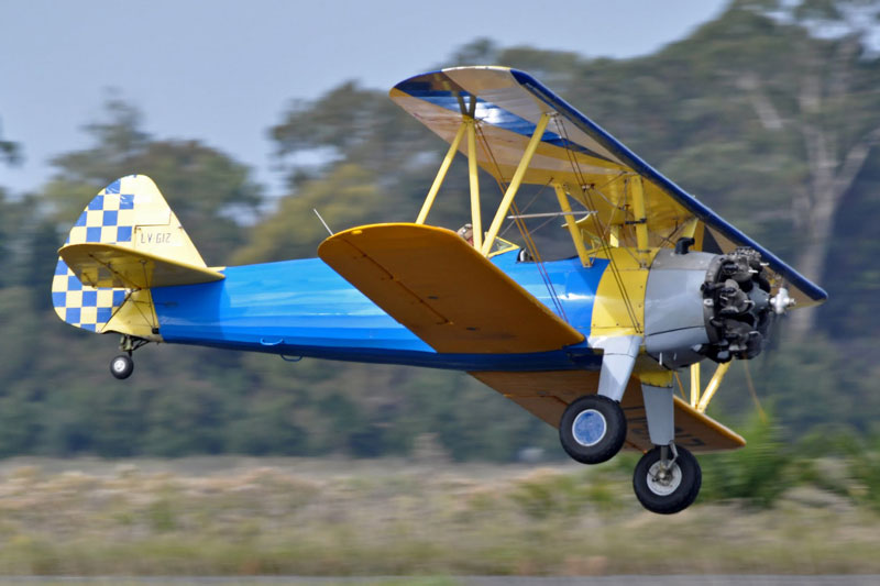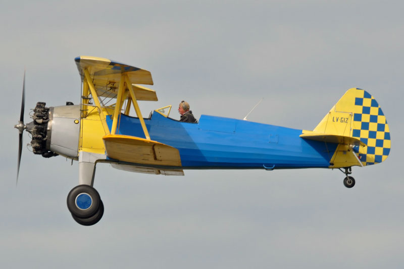 | Privado | Boeing Stearman E75 (N2S-5) | LV-GIZ | C/n 75-5301. Modelo E75, US Navy Designation N2S-5. Serial US Navy 61179. Incorporado a la Aviacion Naval de la Armada Argentina el 1 de Enero de 1953 0309/1-E-58, luego como 3-EN-8. Baja en 1958. En 1959 matriculado como LV-GIZ a nombre de la Secretaria de Marina. asignado a instituciones de vuelo, siendo donado al Aeroclub Tandil operando como LV-IJW desde el 2 de Julio de 1959. Vuelto a registrar como LV-GIZ. Ultimo usuario conocido Patricio Seidel. En Vuelo. |