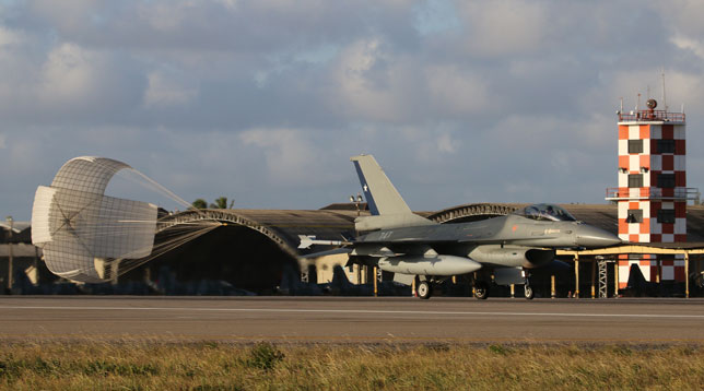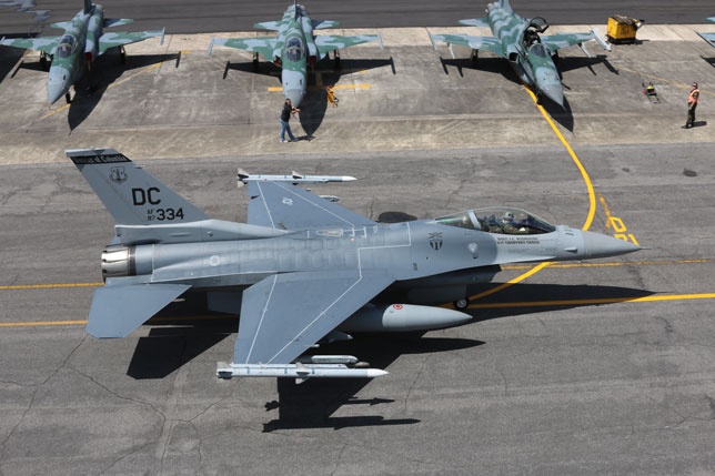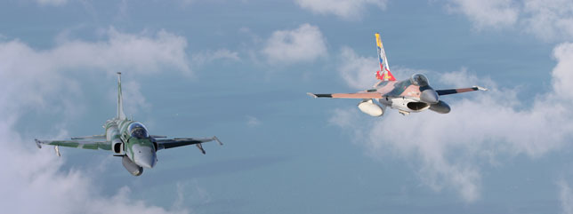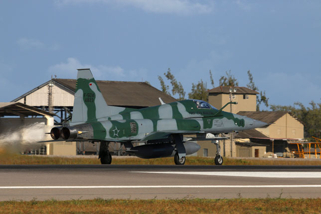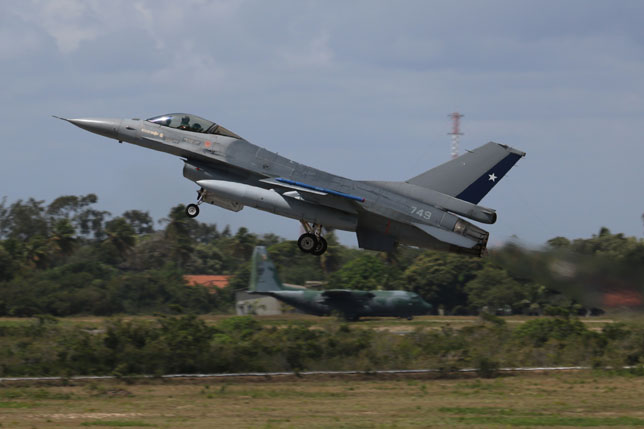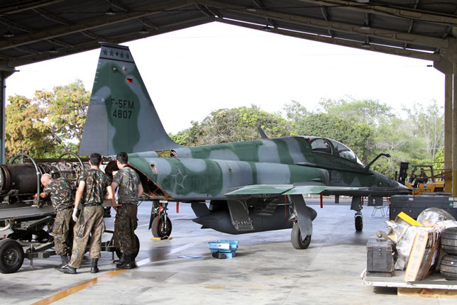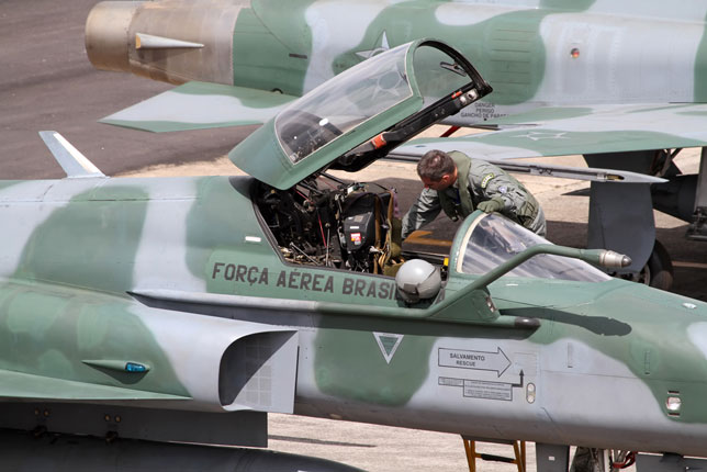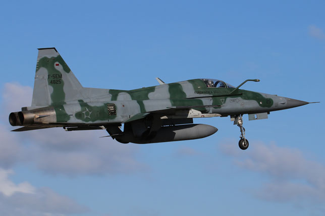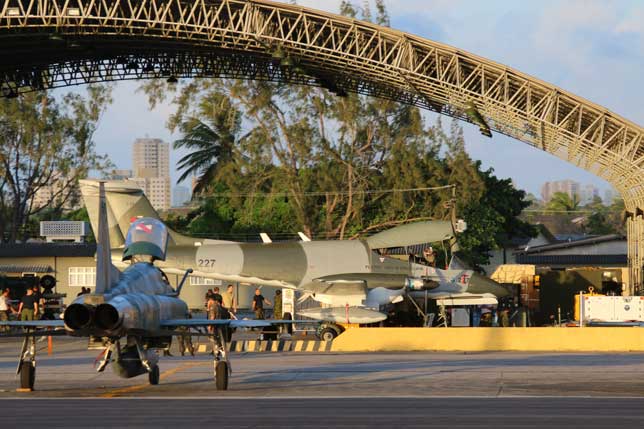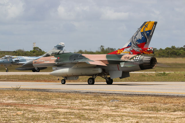 Foto de portada: Un F-16C de la USAF rueda delante de una línea de F-5EM brasileños (foto: Rob Nispeling)