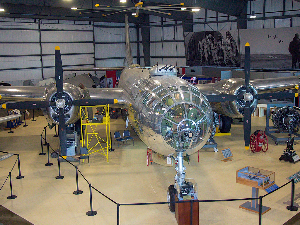 Las exposiciones del museo incluyen una selección de aviones de la Segunda Guerra Mundial, incluyendo un B-29 Super Fortress fantásticamente conservado, varios cazas terrestres y embarcados (incluido un impecable P-47 Thunderbolt) y dos bombarderos medianos (un B -25 Mitchell y un A-26 Invader).