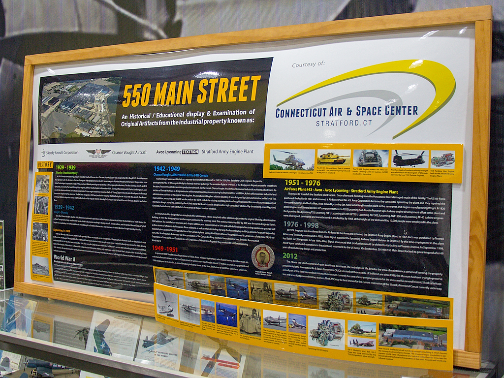 El hangar, estrecho pero bien iluminado y relativamente fácil de recorrer, también muestra una fascinante lista de artefactos, objetos coleccionables y recuerdos de años pasados, incluidos uniformes, prendas de vuelo, modelos de aviones y helicópteros a escala, manuales, carteles y exhibiciones informativas que conmemoran a los pioneros y veteranos nativos del estado, desde humildes tripulantes de prueba de Stratford, héroes de Connecticut que combatieron en Pearl Harbor hasta el hijo adoptivo del estado, el diseñador ruso Sikorsky.