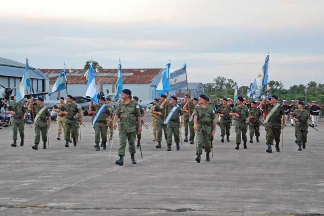 Luego, hizo uso de la palabra el General de Brigada Grandinetti, quien expresó lo siguiente, “Saludo en este día de la Aviación de Ejército en especial a los Cadetes del Colegio Militar, a los Aspirantes del Departamento de Aviación de la Escuela de Suboficiales del Ejército, y a los integrantes del Regimiento de Asalto Aéreo, con quienes siempre trabajamos juntos y nos da mucho gusto de tenerlos con nosotros, también a las banderas de los elementos de aviación que están cubriendo todo el territorio nacional y en especial a la bandera de la 3ra Sección, la más nueva de todas que va a enarbolar en Resistencia Chaco, su nuevo destino.