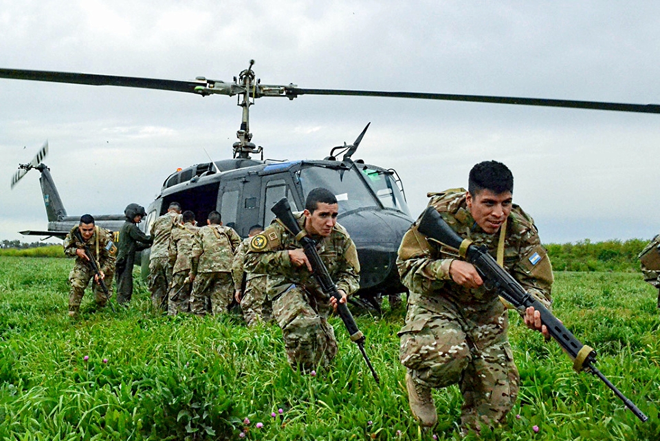 Supervisados por el comandante de la reconocida unidad escolta presidencial, coronel Oscar Roberto Armanelli, los instruidos aprendieron las medidas de seguridad que se deben respetar alrededor de una aeronave y las señales tierra-aire que se realizan en operaciones helitransportadas y practicaron técnicas de embarque y desembarque con un UH-1H Huey.