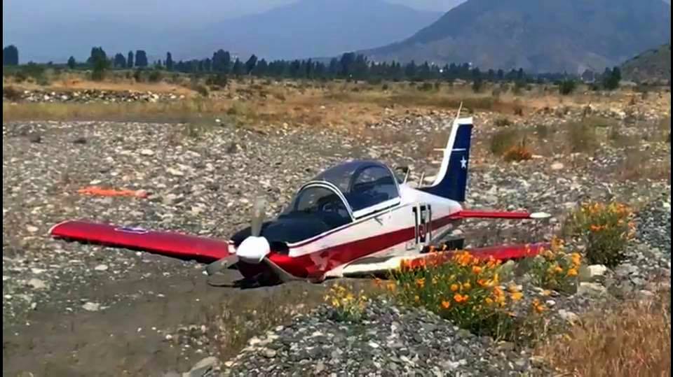 El segundo se produjo a media mañana del feriado nacional del viernes 27, cuando un T-35B[E] Pillán de la Escuela de Aviación Capitán Ávalos Prado debió aterrizar de emergencia en un sector pedregoso a orillas del Río Cachapoal cerca de Rancagua (VI Región), resultando con lo que una fuente periodística local definió como «daños de mediana consideración» en el fuselaje, las alas y las hélices.
