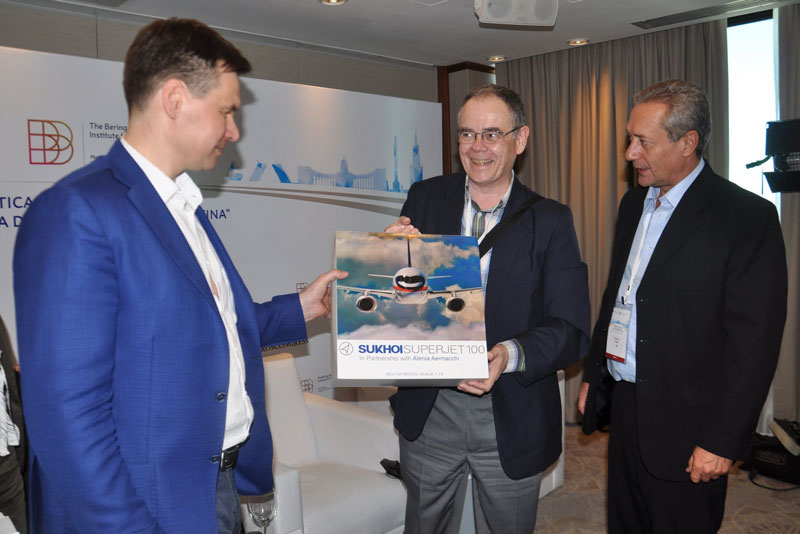 Seguidamente tuvo lugar la ponencia del Co-expositor, Evgeny Andrachnikov de la United Aircraft Corporation de Rusia quien para esta ocasión se trasladó especialmente desde Santiago de Chile donde se encontraba realizándose la Feria Internacional del Aire y el Espacio (FIDAE) 2016, fue el encargado de disertar sobre el Sukhoi Super Jet 100 (SSJ 100).