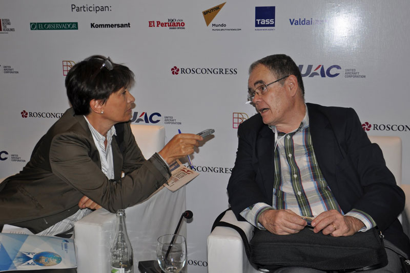 A las 14:30 Hs comenzó la Sesión Abierta Mediática “Coyuntura Política y Económica Mundial Vista Desde la Federación Rusa y América Latina” que tuvo lugar en la Sala Zorrilla de San Martín C, del piso 25 de este hotel. Allí se desarrollaron dos ponencias relacionadas a la temática aeronáutica. La primera de ellas fue la presentación pública del reporte del IBBA sobre El estado del mercado de aviación civil del Cono Sur cuyo autor fue el corresponsal senior de Gaceta Aeronáutica, Arq. Pablo Potenze.