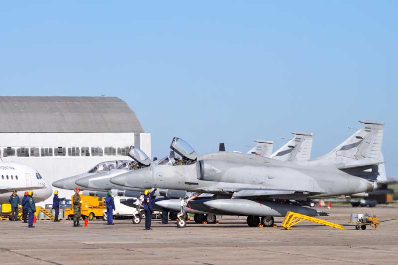 El dispositivo aéreo estuvo encabezado por la escuadrilla de tres A-4AR, una sección de dos IA-63 Pampa, la escuadrilla de tres Hercules y finalmente los tres IA-58 Pucará.