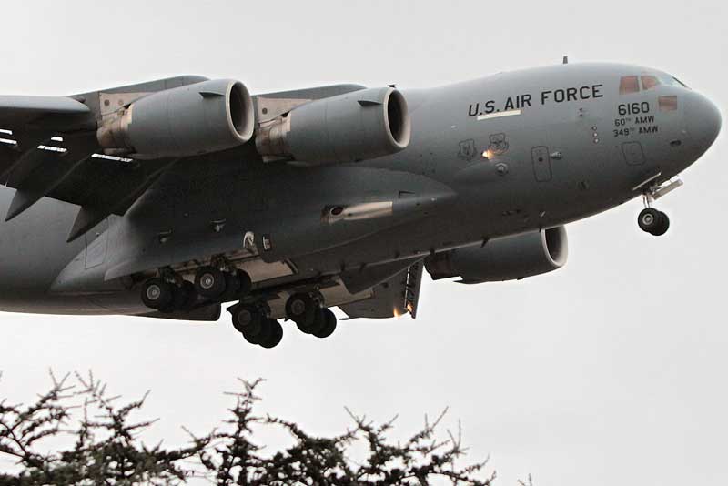 El día 15 dos Globemaster III adicionales (03-3126 y 06-6167) arribaron al mismo aeropuerto, mientras que el 07-7183 hizo su arribo al día siguiente momentos después de la llegada de Pence.