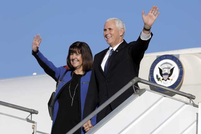 Al igual que en las escalas previas de esta gira la USAF fue la responsable del traslado de la avanzada encargada de proveer seguridad y movilidad al Vicepresidente Pence.