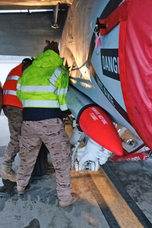 En ocasiones parece que los que brillan más son los pilotos pero nunca hay que olvidar el encomiable trabajo y esfuerzo del personal de tierra como son los mecánicos y armeros. Su esfuerzo día y noche para mantener a los aviones disponibles para el vuelo bajo las duras condiciones del invierno en Rumanía es digno de mención.