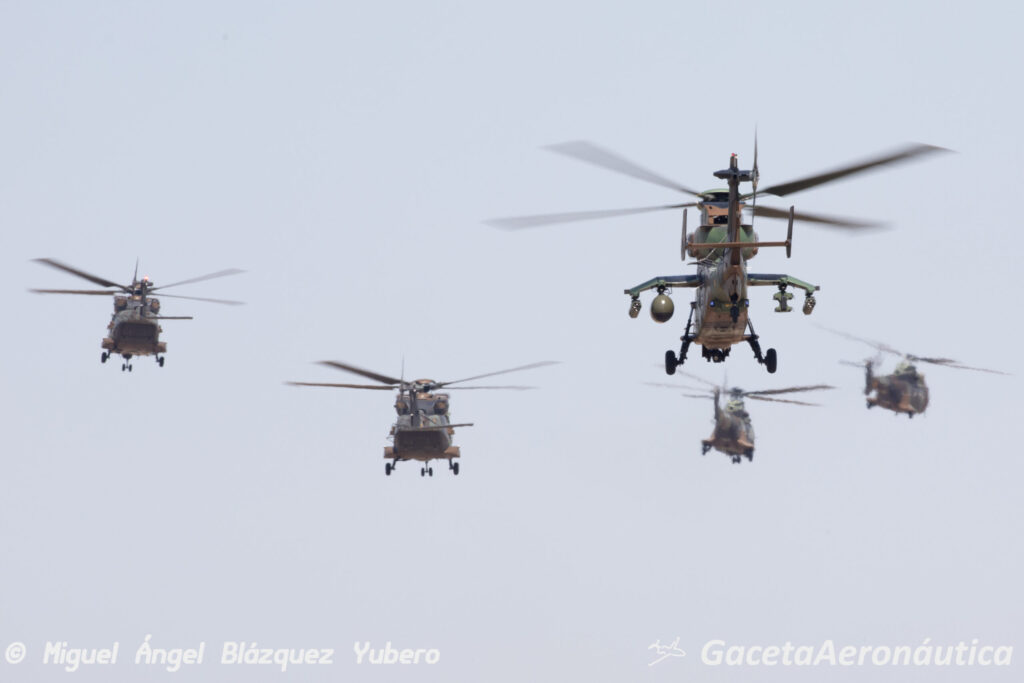 HA-28 Tigre, NH-90 (HU-27), AS-332 (HU-21) y EC-135 (HE-26).