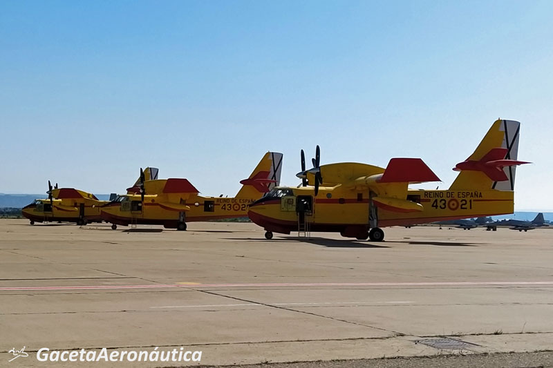 EF-18 – Alas 11 y 15, Eurofighter – Alas 11 y 14, SF-5BM – Ala 23, A400M – Ala 31, A330MRTT 45° Grupo, C-212 Aviocar – 721 Escuadrón de Fuerzas Aéreas, C-101 – Patrulla Águila (Academia General del Aire), PC-21 – Academia General del Aire, EC-120 – Patrulla Aspa, CL-215T – 43º Grupo de Fuerzas Aéreas y HD-29 – Ala 48.