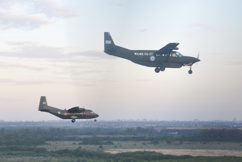 En esta oportunidad el dispositivo aéreo estuvo conformado por un Cessna 208B Grand Caravan EX y dos CASA 212-200, todos pertenecientes al Batallón de Aviación de Apoyo de Combate 601 (B Av Apy Comb 601), los mismos despegaron primero de su base de asiento para dirigirse a una zona situada sobre la localidad de Pilar, donde se mantuvieron efectuando circuitos de espera hasta que fue el momento del pasaje. Las alas fijas encabezaron la formación siendo el Caravan el guía y los CASA 212 los numerales que le formaron a ambos lados y levemente por detrás.