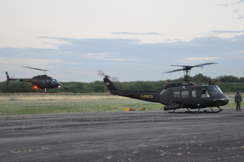 Estos fueron seguidos por las alas rotativas de la “Alfa Eco”, los mismos tuvieron su punto de espera en una zona cercana al aeródromo, este componente estuvo conformado por tres Agusta Bell AB-206 B1 de la Escuela de Aviación de Ejército «Coronel Arenales Uriburu» (Esc Av Ej), tras ellos hicieron su pasaje tres Bell UH-1H Iroquois/Huey II, el que lideraba la formación perteneciente al Escuadrón de Aviación de Exploración y Ataque 602 (Esc Av Expl Atq 602) mientras que los numerales pertenecían al Batallón de Helicópteros de Asalto 601 (B Helic Asal 601).