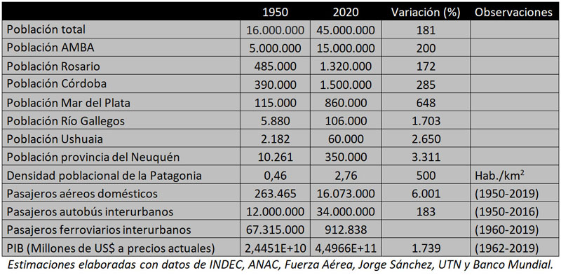 Pero otra parte tiene que ver con otros valores que no son numéricos sino sociales, culturales, políticos. Los argentinos aprendieron a volar, el ferrocarril interurbano de pasajeros se redujo a una mínima expresión y el turismo creció como nunca antes, lo que exigió más servicios de todo tipo.