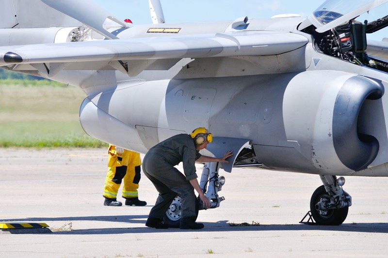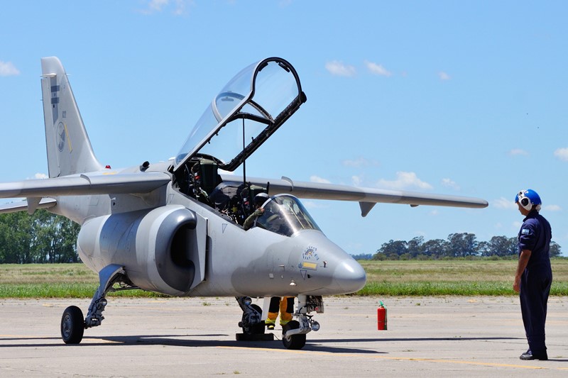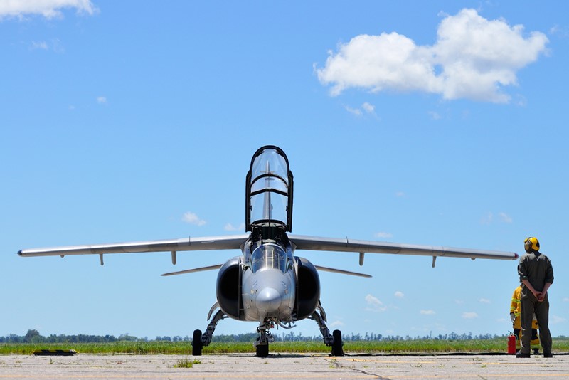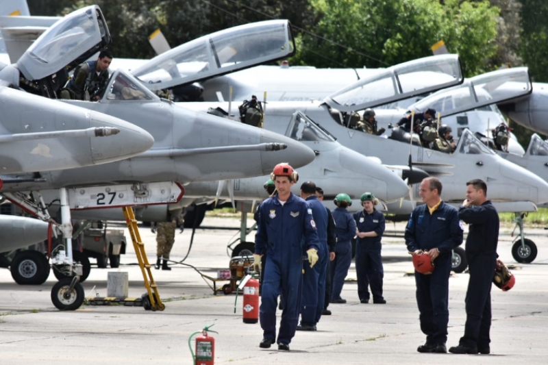 Continuando con las actividades en plataforma, continuamos con la línea de vuelo de las aeronaves IA-63 Pampa II-40 tanto de la IV como VI Brigada Aérea, pudiendo apreciar el trabajo del personal de los GT-4 y GT-5 realizando las ultimas comprobaciones a las maquinas y el abordaje de sus pilotos para hacer un ejercicio de puesta en marcha rápida y rodaje hacia cabecera con tres aeronaves.