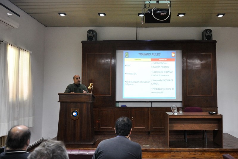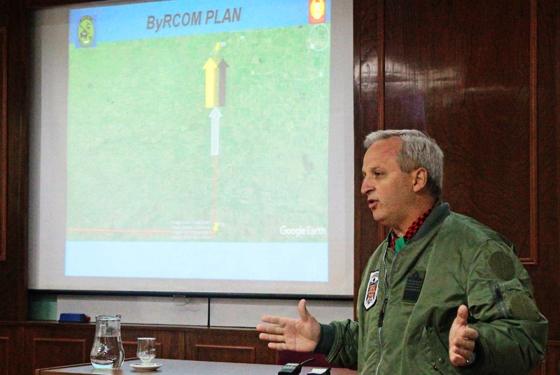 Posteriormente la tripulación de uno de los Bell 412EP de la VII junto a la tripulación de los IA-58A Pucará de la III Brigada, ofrecieron una versión simplificada de lo que sería el briefing para la demostración de Búsqueda y Rescate en Combate de un piloto eyectado que presenciaríamos más tarde. Allí, inicialmente la tripulación expuso las condiciones del aeródromo de operaciones en lo referente a comunicaciones, radioayudas disponibles, meteorología, tiempos y horarios de operaciones en las que se iba a desempeñar el ejercicio, y cualquier información adicional y relevante que contara en la correspondiente NOTAM (Notice to Airmen/Información Para Aviadores) . A posteriori, se mencionarían los Sistemas de Armas involucrados en el mismo: Bell 412EP e IA-58A Pucará. El objetivo perseguido en este tipo de ejercitación, era el adiestramiento de las tripulaciones tanto de alas rotativas como de ala fija en la ejecución con total seguridad y disciplina de misiones de ByRCOM, tal como se estipula en el MAP 17, denominado «Manual de Procedimientos Aéreos sobre Búsqueda y Rescate en Combate».