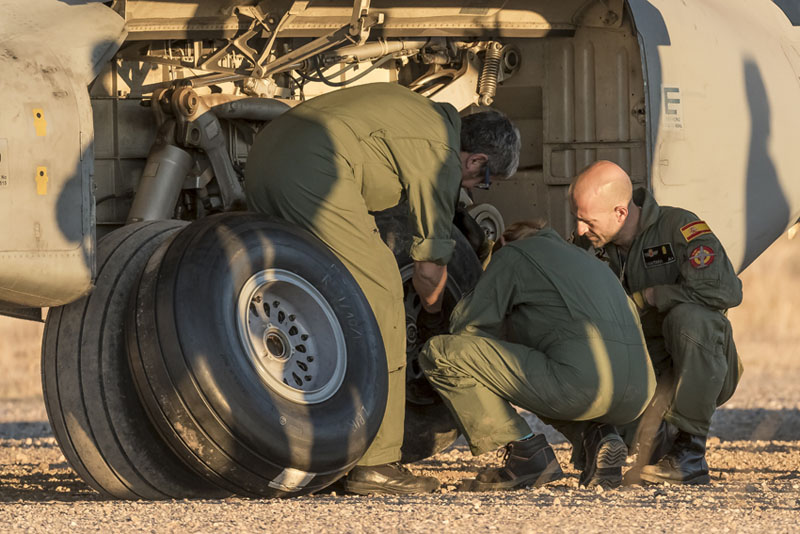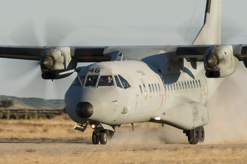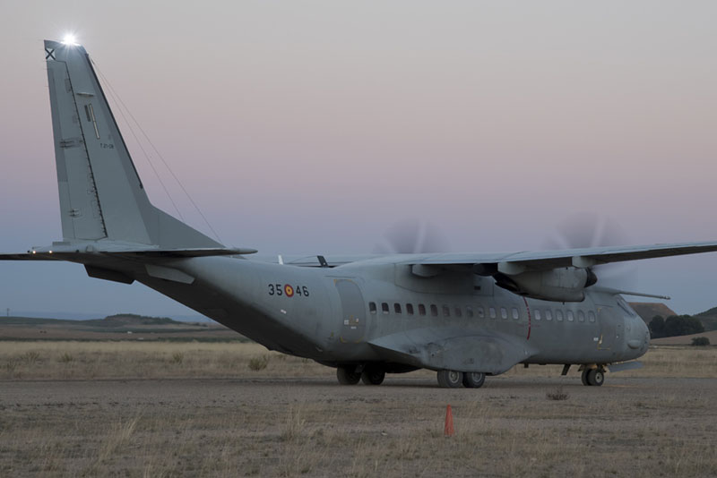 Se realizaron tomas y despegues del C-212 del 721 Escuadrón y del C-295M del Ala 35. Este último tuvo un pequeño incidente al pinchar una rueda lo que nos permitió ver lo bien preparadas que están las tripulaciones para solucionar los problemas, ya que en breves momentos se cambió la rueda y la aeronave estaba de nuevo operativa y en el aire.