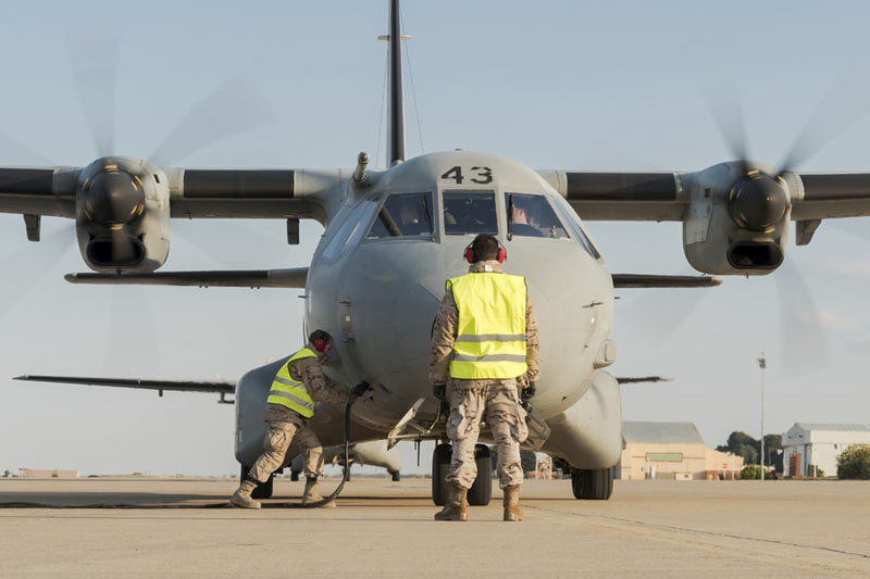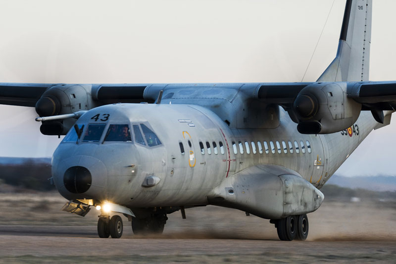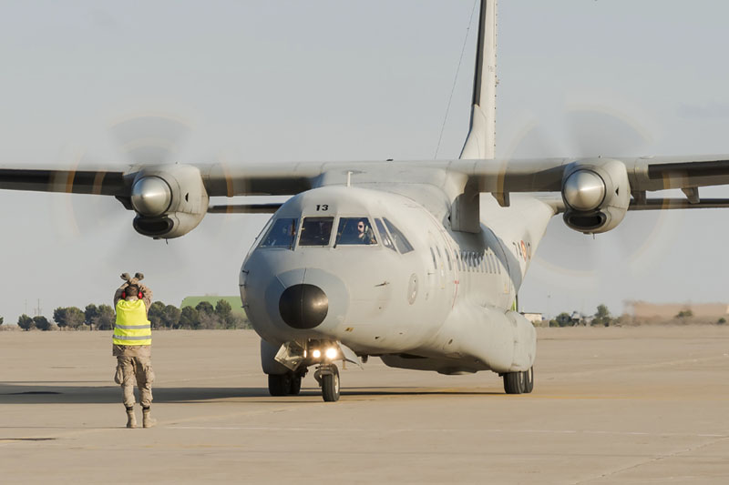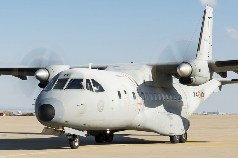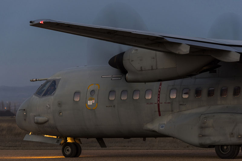 C-235 a punto de detenerse en la Plataforma Militar Sur de la Base Aérea de Zaragoza (foto: José Luis Lezg).