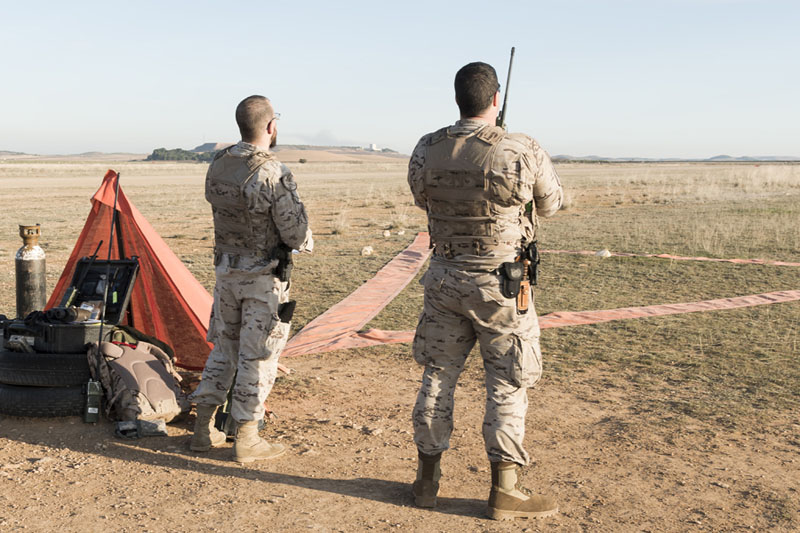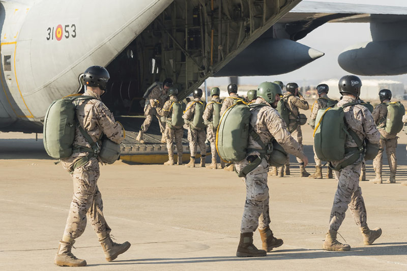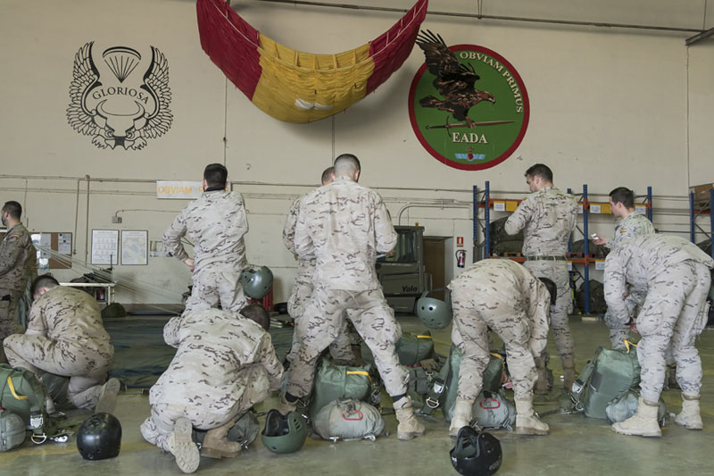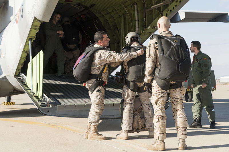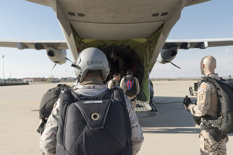 Personal del EADA rumbo al embarque para un salto paracaidista (foto: José Luis Lezg).