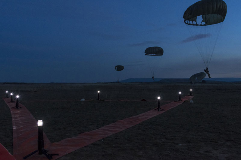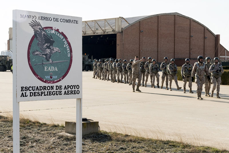 Desde los aviones se lanzaron paracaidistas y cargas del Escuadrón de Apoyo al Despliegue Aéreo (EADA), además de practicar tomas y despegues de máximo esfuerzo en la pista de tierra del aeródromo de Ablitas.