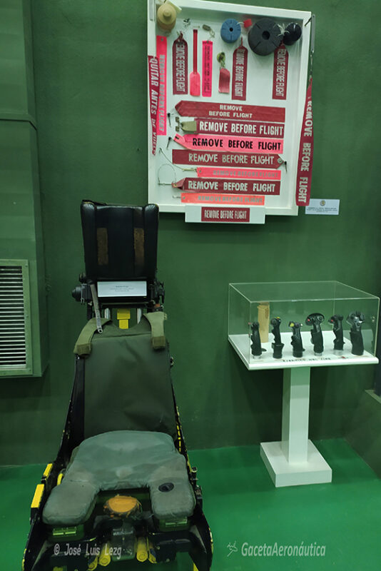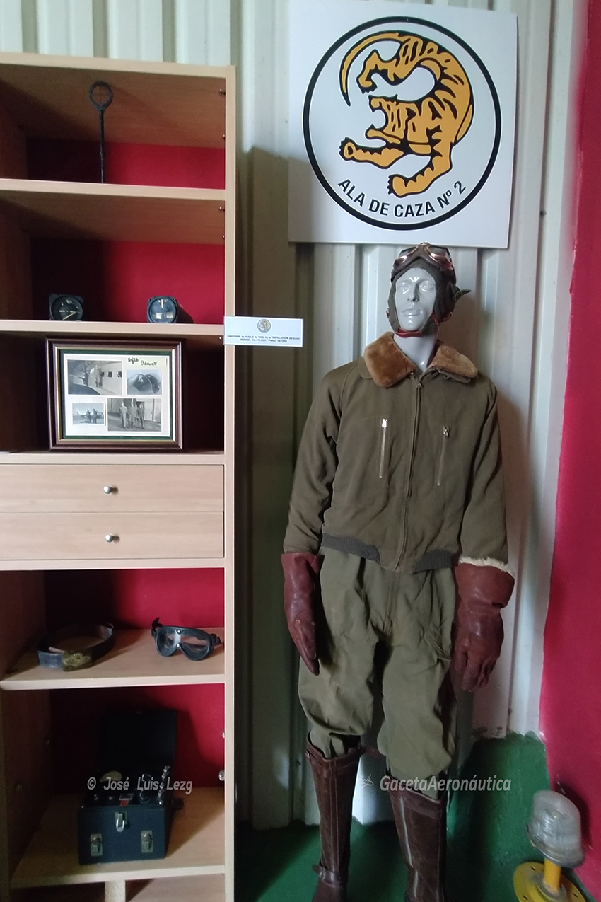En la misma sala podemos ver un asiento eyectable del T-33, un maniquí con el equipo de vuelo de un piloto de Heinkel He-111 Pedro, una vitrina con un casco de piloto del Ala de Caza Nº 2 de los años 50, una mesa con diferentes manuales del F-86F y del T-33. Las paredes están adornadas por multitud de fotografías de época que nos acercan al quehacer diario de los pilotos y del personal de mantenimiento de la recién creada Ala de Caza.