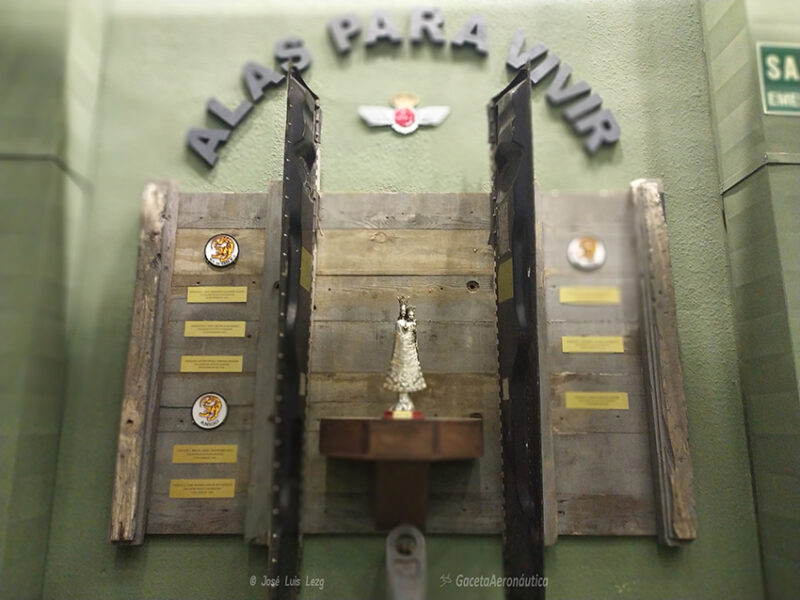 Tras el emulador tiene su espacio un sobrio pero muy bien conseguido rincón para el recuerdo de los caídos en acto de servicio, tanto en el Ala de Caza Número 2, como en el 41 Grupo de Fuerzas Aéreas y en el Ala 15. En el centro una bella escultura de la Virgen de Loreto (Patrona del Ejército del Aire) y coronándolo todo el roquiski, emblema del EA, y el bonito lema “Alas para vivir”.