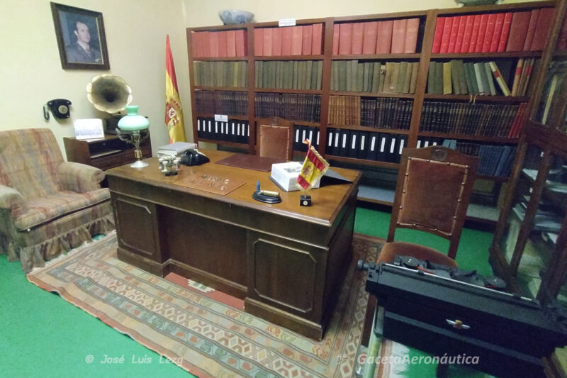 En otra sala y muy bien recreado se puede ver un despacho de épocas pasadas, incluso sentarse en la silla del que pudiera ser el Jefe del Ala de Caza. Como complementos pueden verse un teléfono de pared de baquelita y otro sobre la mesa del mismo material, una preciosa gramola y a un lado una máquina de escribir con una silla para el escribiente/secretario. Tras la mesa una preciosa estantería de madera en la que se conservan libros y documentos relativos a las operaciones de vuelo de la época.