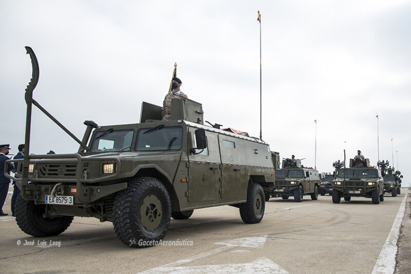 Tras entonar el himno del Ejército del Aire y el homenaje a los que dieron su vida por España, se ha llevado a cabo un desfile terrestre de personal, perros policía y vehículos Vamtac del EADA dotados de montajes dobles de misiles Mistral La meteorología ha impedido la celebración del desfile aéreo previsto de tres EF-18M y un A400M y solo ha sido un EF-18M el que ha dado una pasada en el momento del homenaje a los caídos.