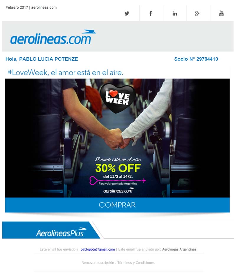 Yendo a la publicidad pura, en febrero de 2017 encontramos una promoción de descuentos referida al amor, con una foto muy ambivalente.