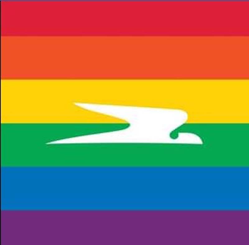 Y a mediados de 2019 se hizo un ejercicio con el símbolo empresario y la bandera multicolor, muy parecido al que años atrás había hecho American.