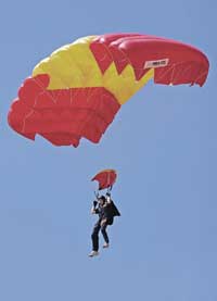 Un C-212 Aviocar (T.12) del 721 Escuadrón con base en Alcantarilla (Murcia) sobrevoló la Romareda y a la señal de los CCT lanzó a cinco paracaidistas miembros del EADA. A pesar del molesto viento uno a uno los cinco fueron cayendo en el centro del campo para regocijo del público, portando el último de ellos una gran Bandera Española ondeando al viento. Se retiraron entre la ovación popular y e incluso tuvieron que firmar autógrafos a multitud de niños que lo requerían.