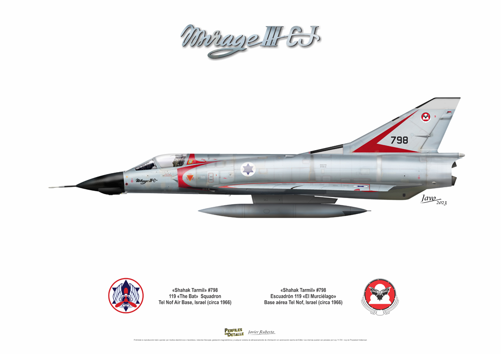 Bibliografía: Jorge Nuñez Padín: “Mirage IIICJ & IIIEA” (Air Force Series No.7, Argentina, 2002), Brigadier General Amos Amir: “Fire in the Sky: Flying in Defense of Israel” (Pen & Sword, Inglaterra, 2005 ), Amos Dor: “From Mirage to Kfir part 1: The Mirage IIIC Shahak” (AD Graphics 1999), Raymond Ball “Camouflage & Markings The Israeli Air Force Part Two: 1967 to 2001” (Editor de la serie Neil Robinson por Guideline Publications , febrero 2001), Jorge Nuñez Padín: “Dassault Mirage IIICJ/BJ & IIIEA/DA” (Serie Fuerza Aérea n°23), Juan Carlos Cicalesi – Cesar del Gaizo: “Mirages I: Mirage III en Argentina”, (Destroyer , DEYSEG 2002). Fuentes de Internet: Modelistas Misiones (página de Facebook), Airplane Stories, Amilarg, Aerohistoria Argentina, Britmodeller.com, José Luis Martínez Eyheramendi, Ángel Bertogna, Avialatina, Horacio Claria, Historias de Aviones, Paolo Rollino y Raymond Ball. Amos Dor, Paolo Rollino, Javier Ruberto y Javier Mosquera contribuyeron significativamente a esta historia.