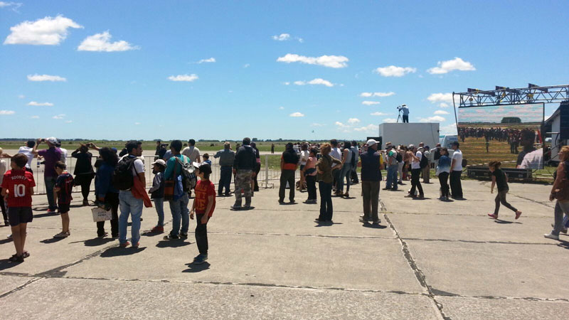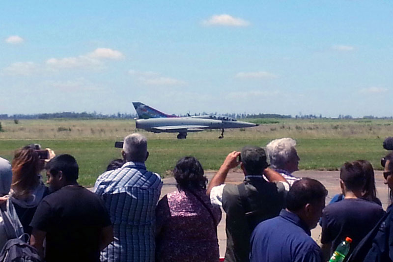Tal como estaba previsto, desde las 16.30 hs. los asistentes pudieron ver una exhibición de una escuadrilla de aviones Mirage, que fue a la vez la última demostración y el penúltimo último vuelo programado. Luego se dió paso al acto castrense.