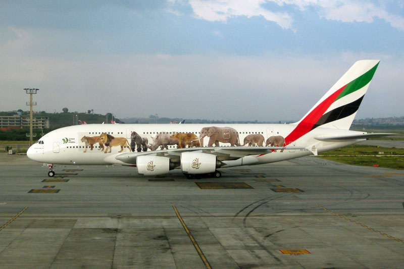 Emirates fue la primera aerolínea en realizar un pedido del nuevo avión de dos pisos de Airbus cuando se presentó el proyecto A380 en 2000. La aerolínea se inscribió en el libro de pedidos con cinco unidades del Super Jumbo con opciones por cinco más, lo que dio inicio a una de las relaciones más emblemáticas de la aviación moderna. Incluso llegó a tener un pedido de dos aviones de la versión de carga prevista, y nunca fabricada.