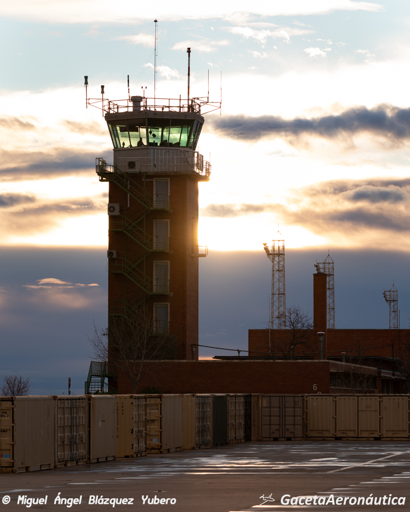 La torre de control de Zaragoza es una construcción inconfundible, construida hace más de 50 años cuando la USAF comenzó a operar desde la base zaragozana ha sido testigo de todos los acontecimientos que han tenido lugar en esta base. El acceso a la sala superior donde están los controladores se realiza por una angosta escalera, el recorrido equivale al de un edificio de seis plantas aproximadamente. Cuando uno llega al final de la escalera le espera una ingrata sorpresa, aún queda un último tramo de ascenso por una estrecha escalerilla metálica. Al acceder a la sala por primera vez llama la atención la visibilidad que se tiene de toda la base aérea, el acristalamiento integral de la sala llena todo de luz natural y permite una visibilidad de 360°.