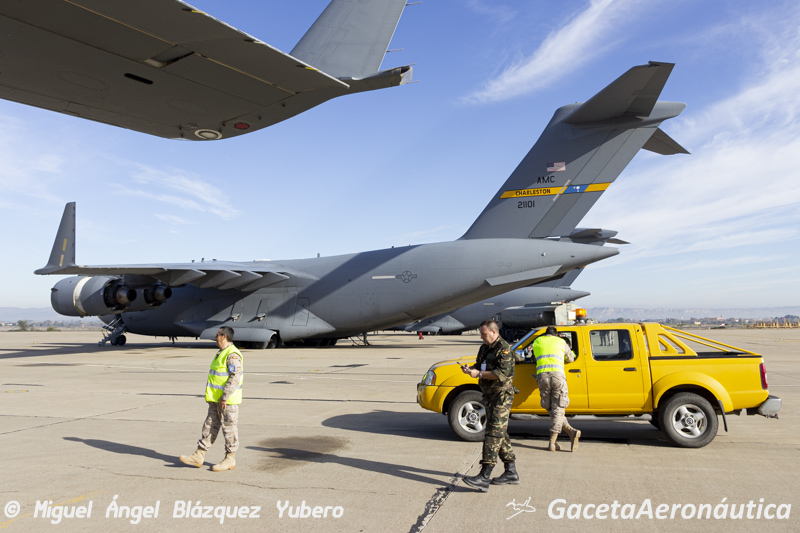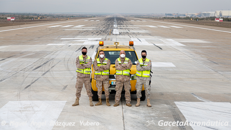 Un pick up de color amarillo rueda veloz por la plataforma sur de la base de Zaragoza, por la radio se escucha “coche pistas autorizada entrada en tango bravo”, el vehículo cruza la línea roja que marca el final del a plataforma y se introduce en la pista de rodadura, territorio habitualmente reservado para aeronaves. “Torre de Pistas, solicitando entrada por Bravo 3” se escucha por la radio de nuevo, la torre de control da la autorización y el equipo de Pistas entra por la salida B3 para hacer una revisión de rutina en busca de posibles FOD ya que hace pocos minutos acaba de despegar un “heavy”, carguero en el argot de la Escuadrilla.