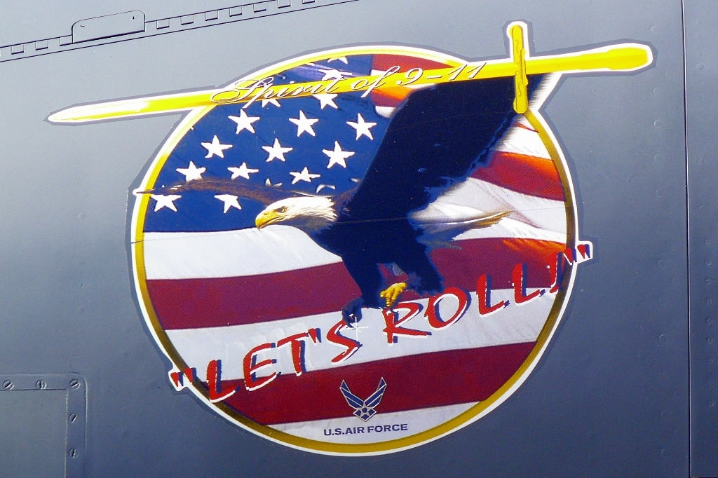 En el costado izquierdo de la trompa, justo delante del cockpit, aparece el sticker «Spirit of 9-11 – Let’s Roll!» con que la USAF honra a las víctimas del 11 de septiembre de 2001.