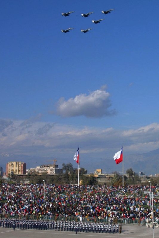 Reconocimientos: Patricio dal Zotto contribuyó en la elaboración de esta nota. Otras fuentes consultadas: Los sitios especializados FIDAE Extraoficial, Modo Charlie, Virtualiners y Zona Militar; los medios generales Chile.com, El Mercurio, La Tercera, Las Últimas Noticias, Teletrece y Terra y los sitios oficiales de las municipalidades de Vitacura y Maipú y de la Fuerza Aérea, el Ejército, la Armada y los Carabineros de Chile. Esta historia se publicó originalmente en Pista 18, el portal de los spotters argentinos.