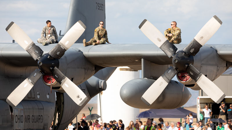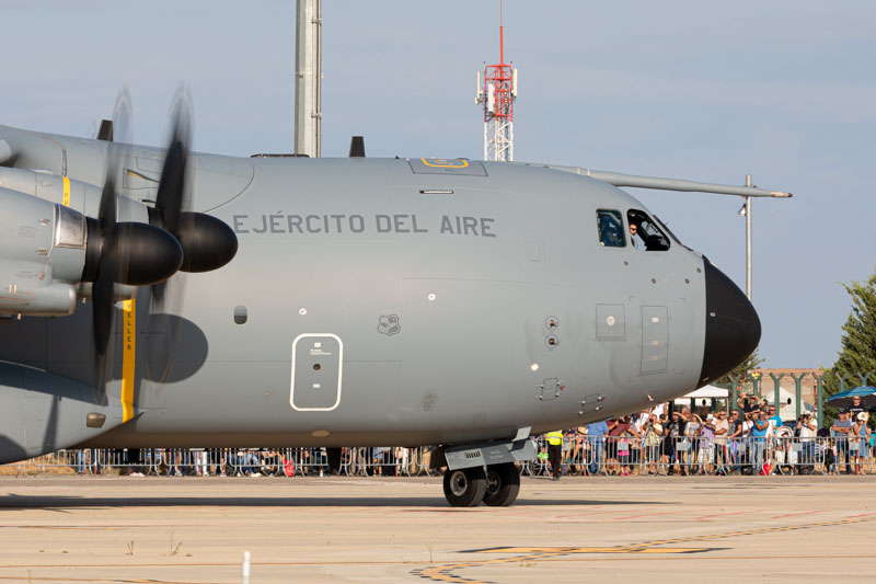 Sobre la plataforma de aparcamiento el público ha podido ver de cerca los Eurofighter y A400 del Ejército del Aire, ha podido descubrir el interior de un C-130 de la USAF y ha sentido de primera mano lo que experimentan los miembros de las FAMET a bordo de un Chinook. La previsión meteorológica ha sido un quebradero de cabeza durante toda la semana pero, finalmente el sol ha brillado con fuerza y el programa de exhibiciones se va a llevar a cabo con total normalidad.
