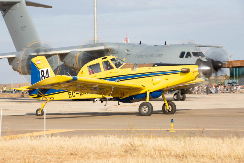 Abren el periodo de exhibiciones los Aerosparx, seguidos del A400 del Ejército del Aire que se ha desplazado desde la vecina Ala 31 de Zaragoza. Los Air Tractor de Pegasus Aviación y el Super Saeta de la FPAC son los siguientes participantes y evolucionan sobre el cielo demostrando la pericia de sus pilotos. Cuando el Super Saeta toma tierra comienza uno de los platos fuertes del festival, la exhibición del F-18 Hornet del Ala 15 del Ejército del Aire que ha despegado desde Zaragoza unos minutos antes. Las cualidades de este clásico de los cielos son llevabas al límite por el piloto exhibidor. Una pasada transónica formando estelas de condensación en el fuselaje del Hornet da paso a los siguientes participantes en el festival, las FAMET y la BRIPAC. El lanzamiento de paracaidistas desde el Chinook del Batallón de Helicópteros de Transporte nº 5 (BHELTRA V) de en Colmenar Viejo pone una nota de color y dinamismo en el que los protagonistas son los paracaidistas. Posteriormente el Chinook realiza un display en solitario que incluye el izado de un vehículo, demostrando las cualidades todo terreno de este helicóptero que va a pasar con nombre propio a la historia de la aviación. A continuación la Dornier 27 de la FPAC pone de nuevo en el cielo los colores de la historia de la aviación española.