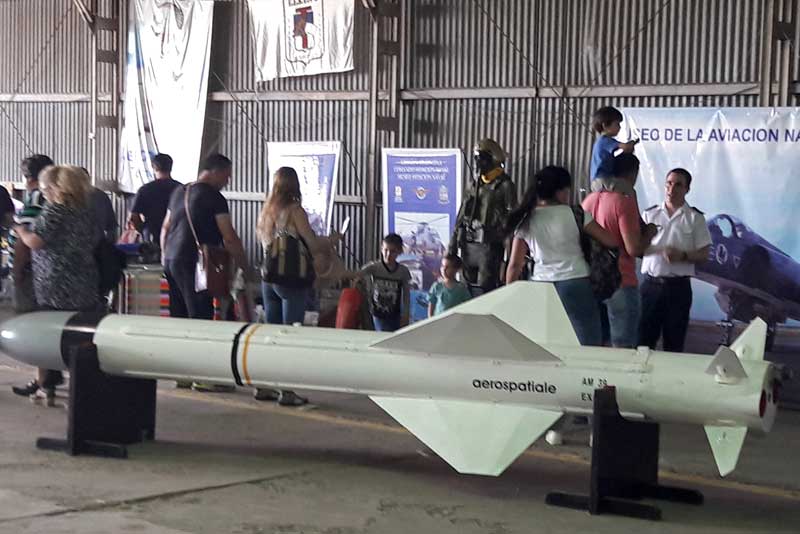 En el interior del hangar principal se pudo disfrutar de la muestra itinerante del Museo de la Aviación Naval Argentina. La misma está compuesta de uniformes, instrumentos aeronáuticos, infografía de los 100 años de la Aviación Naval, las maquetas de un misil aire-aire AIM-9B “SIDEWINDER” que utilizaban las aeronaves Douglas A4Q Skyhawk y del misil AM 39 Exocet de los Super Etendard desplegada en el interior del hangar, asientos eyectables y hélices, que permitió al público apreciar parte de la historia y actualidad de la Aviación Naval.