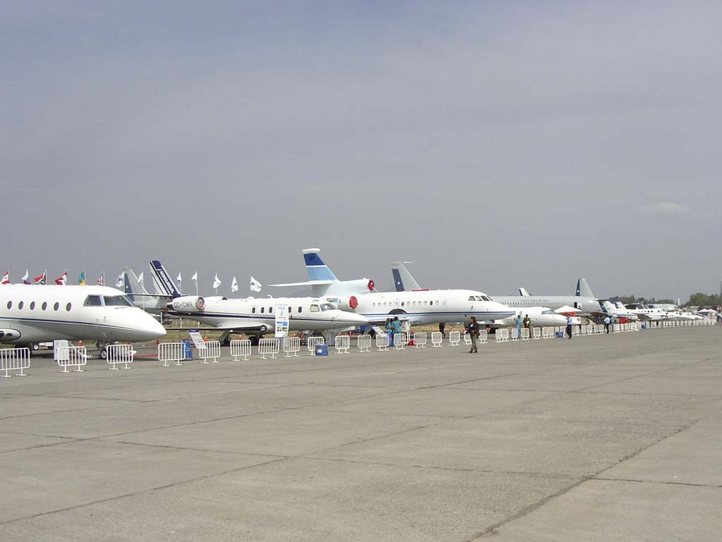 En cuanto a la aviación comercial en la feria, la natural rivalidad en Airbus y Boeing se vivía, pero con desgano por un lado con la presencia del prototipo del pequeño Airbus A-318 (F-WWIA) aparato que años más tarde pasaría a incorporarse a la por entonces LAN Chile en un numero de 15 unidades. Por la otra vereda Boeing si bien como compañía no se presentó con aeronaves hacia presencia con un ejemplar de LAN de Boeing 737-204 CC-CSI (al menos el día inaugural) y con otro Boeing 737-287 esta vez de Aerolíneas Argentinas que promocionaba su único ejemplar hasta esa fecha convertido a configuración VIP con capacidad de 29 pasajeros (LV-JTD), en un proyecto que fue lanzado en Mayo del 2003 y que presentaba hasta esa fecha un promedio de 7 vuelos mensuales transportando a personalidades como Carlos Menen, Nestor Kitchner y Carlos Santana, entre otros. Aerolíneas Argentinas (bajo la administración de grupo Marsans) esperaba poder aumentar a dos aparatos convertidos dependiendo de la demanda, cosa que finalmente no ocurrió, siendo este aparato dado de baja a finales del año 2007, estando preservado en la actualidad en el parque la República de los niños en Buenos Aires. Cuando ambos de estos aparatos ya no estaban en la muestra la bandera de Boeing fue tomada por un B-737-2Q3 de la compañía Sky Airlines (CC-CTB).