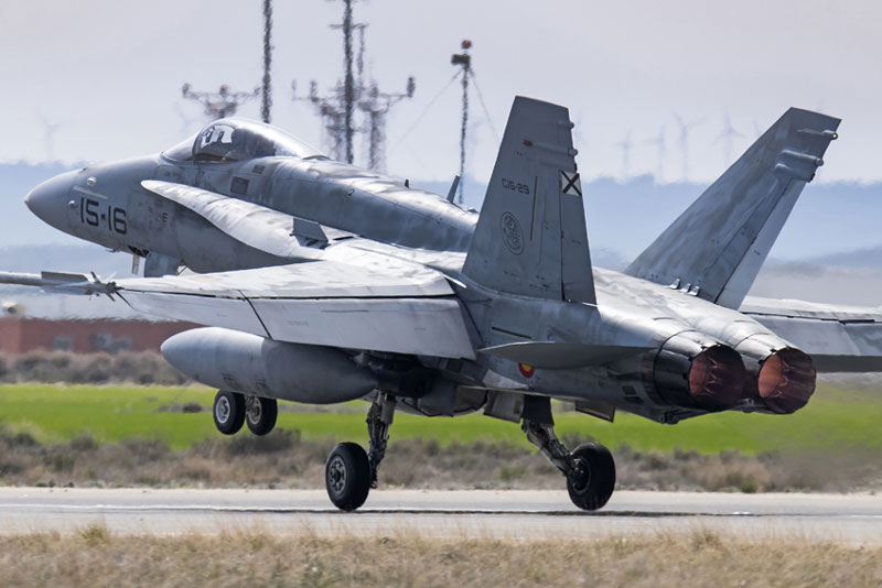 El Ejercito del Aire participa con 7 aviones EF-18 del Ala 15 de Zaragoza. El Ala 15 es una de las unidades punteras del Ejercito del Aire y cuenta con experiencia contrastada en este tipo de ejercicios: Red Flag, Tiger Meet, etc. En esta ocasión se ha desplazado un total de 7 aeronaves, entre ellas varios biplazas, usados habitualmente para fomentar el intercambio con otras unidades participantes en el ejercicio.