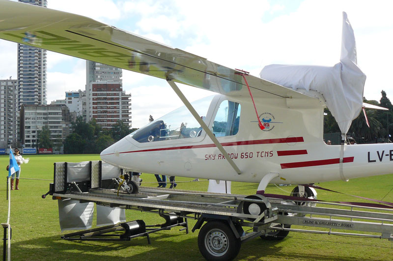 La última exposición del Ejército Argentino (EA) en el Campo Argentino de Polo de Palermo permitió que el público de la capital tomara contacto con la más reciente adquisición aeronáutica del Instituto Nacional de Tecnología Agropecuaria (INTA). Se trata del Sky Arrow 650 TCNS ERA (Enviromental Research Aircraft o Aeronave de Investigación Ambiental) matriculado LV-BME (c/n 015, p/n 103/00), que pertenece al Instituto de Clima y Agua, Sensores Aerotransportados (ICASA) del INTA y que, a través de un convenio marco entre esa institución y el Ejército, ha dado la custodia y operación de la aeronave al Escuadrón de Aviación de Apoyo de Inteligencia 601 (Esc Av A Icia 601), con asiento en Campo de Mayo. El equipo de operadores del ICASA está conformado por los doctores Carlos M. Di Bella y César M. Rabella, licenciado Tomás Hartmann, bioingeniero Arturo E. Melchiori, Damián Feuermann y la ingeniera agrónoma Alejandra Casella. Por el Esc Av A Icia 601, a su vez, están encargados de la operación del vuelo el teniente coronel Ángel Gabriel Pedretti, Jefe del escuadrón, los tenientes primeros Héctor Vittore y Paulino Irazoqui y los mecánicos sargento ayudante Daniel Martínez y el cabo primero Raúl Jurado.