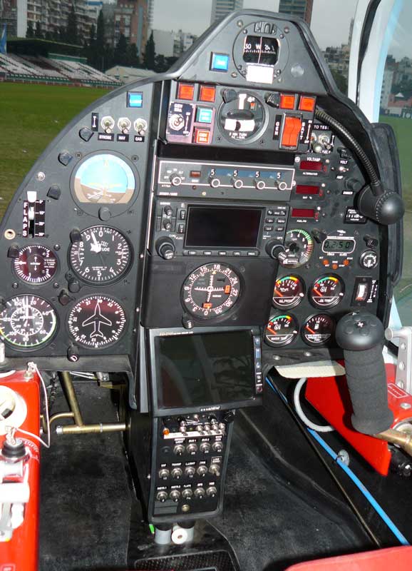Vale la pena destacar el completo instrumental con el que está dotado el panel central. Éste dispone de compás, indicador de giros y ladeos, horizonte artificial, altímetro, variómetro, velocímetro y giro direccional; voltímetro, amperímetro, termómetro, indicador de presión de combustible, indicador de succión, cronómetro e indicadores de posición de trim y flaps (este último con cuatro puntos). Los instrumentos de motor están compuestos por un indicador de potencia, cantidad, presión y temperatura del combustible e indicador de temperatura del agua. Entre los instrumentos de navegación radioeléctrica, podemos encontrar un sistema de navegación y comunicación Garmin GNS 430, transponder Bendix/King KT-76A y un indicador de desviación de curso (Course Deviation Indicador o CDI) MD200-M306. En la parte inferior del tablero de instrumentos, finalmente, encontraremos un monitor color LCD Necvox FD 2560 cuya función no logramos determinar pero que, suponemos, podría servir para presentar alguno de los datos captados por el equipamiento de misión.